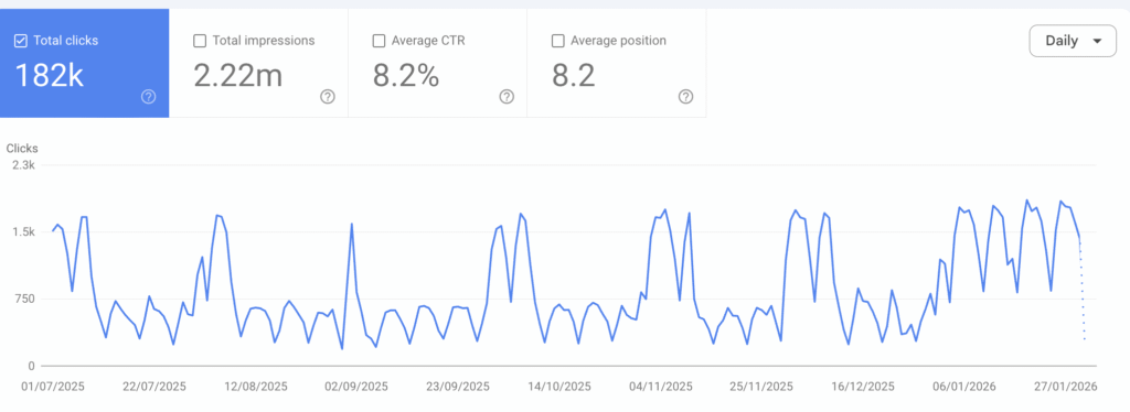 CTR held strong, and average position improved to 8.2