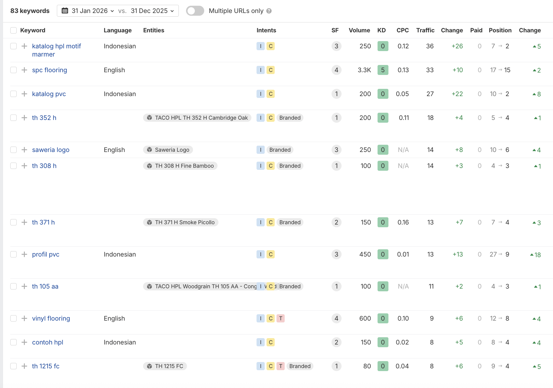 TACO is a top-tier interior surface solutions brand in Indonesia, offering high-quality HPL (High-Pressure Laminates), PVC edge bands, wall panels, and more. With strong offline distribution and brand recognition, TACO aimed to match that presence with improved organic digital performance.